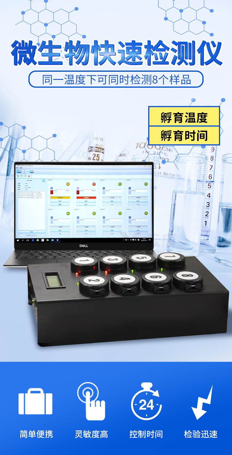 4) 檢測(cè)樣本只需1ml/1g;同一溫度下可同時(shí)檢測(cè)8個(gè)樣品;