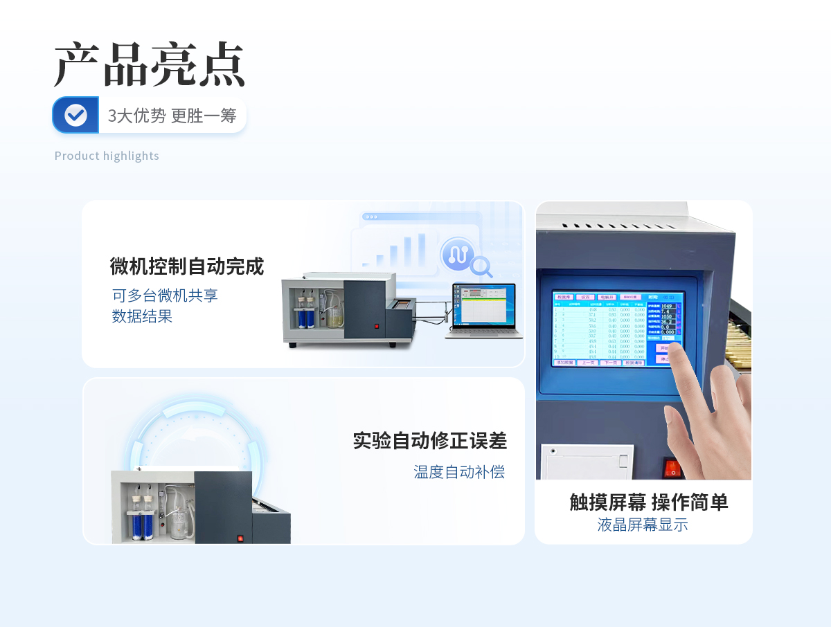 | 1、整個測試過程由計算機控制自動完成。 | 2、誤差可以通過實驗自動修正。 | 3、測試結果永久保存,可查閱、打印。 | 4、溫度自動補償,測溫誤差5%。 | 5、具有硅碳管開機自動保護和過流保護等功能。 | 6、本系統將高溫爐、磁力攪拌器、空氣凈化裝置、電解池、自動送樣機構、單片機控制線路合理地放置在同一機箱內,使整機系統美觀、體積小、系統的放置與連接方便、系統的操作與日常維護簡單等特點。 |