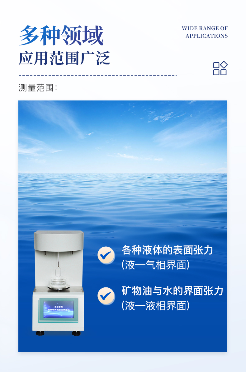 | ★ 測量方法:圓環(huán)法 | ★ 靈 敏 度:0.1mN/m | ★ 測量范圍:2~500mN/m | ★ 準(zhǔn) 確 度:±0.4 mN/m | ★ 電 源:AC220V±5% 50Hz±2.5% | ★ 功 率:50W | ★ 環(huán)境溫度: 5℃~40℃ | ★ 環(huán)境濕度: ≤85% |