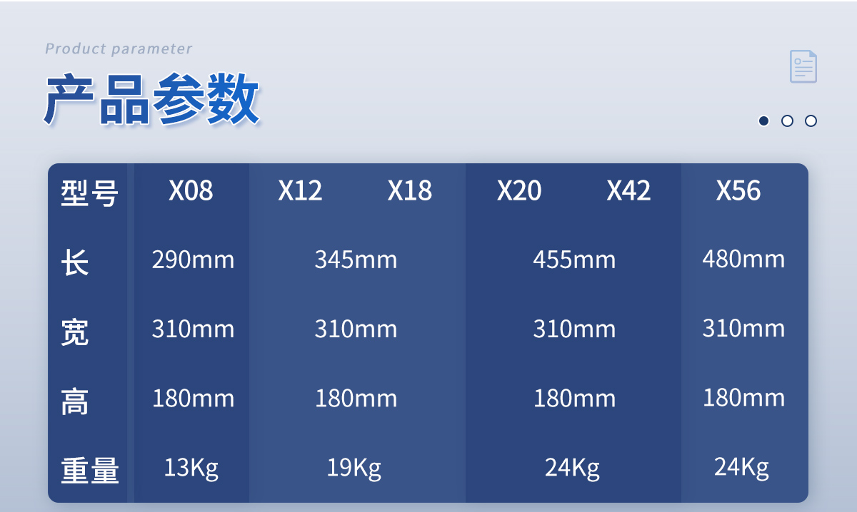 X20/42: 455*310*180mm(長(zhǎng)*寬*高)