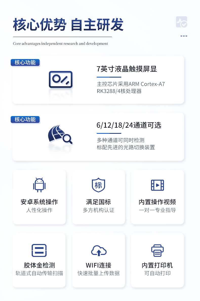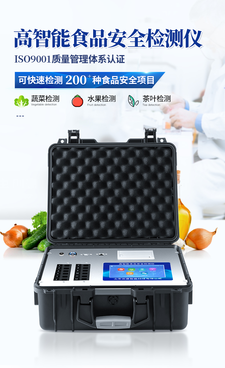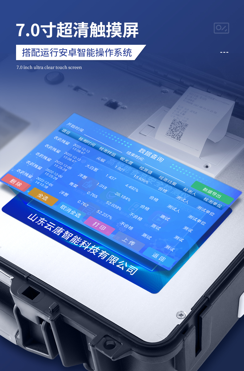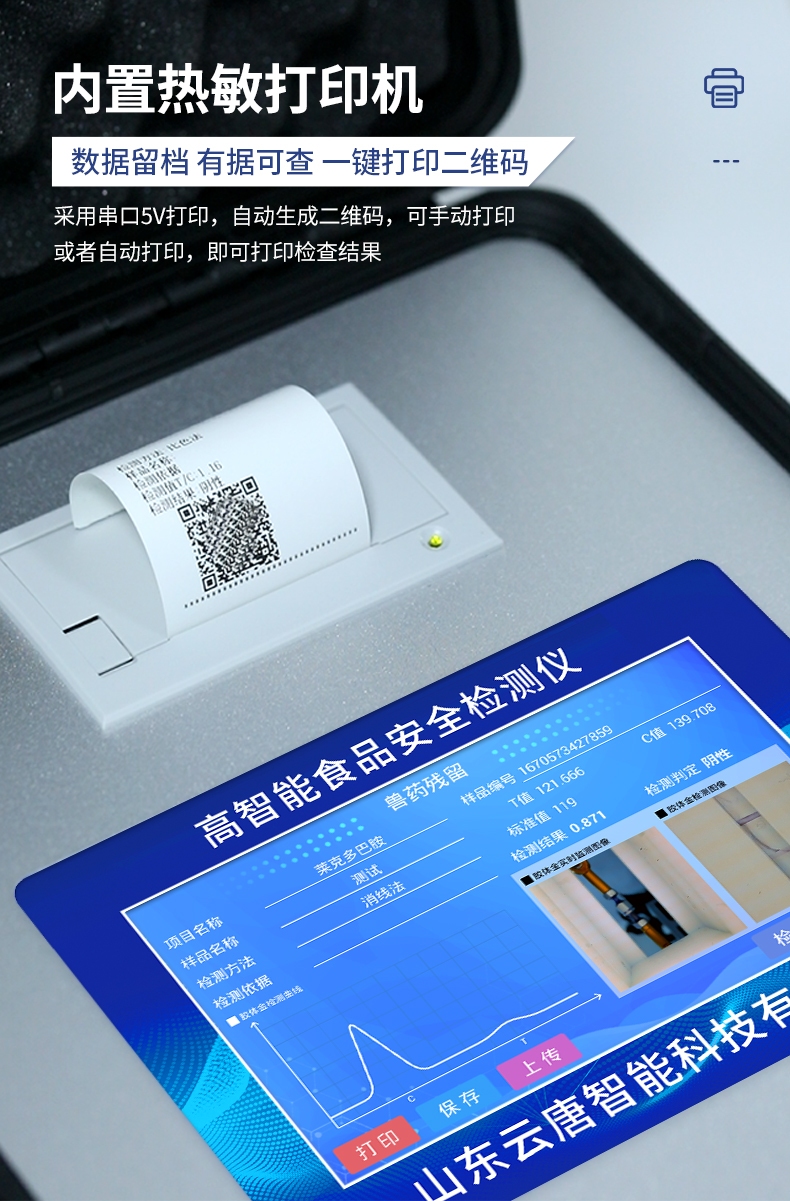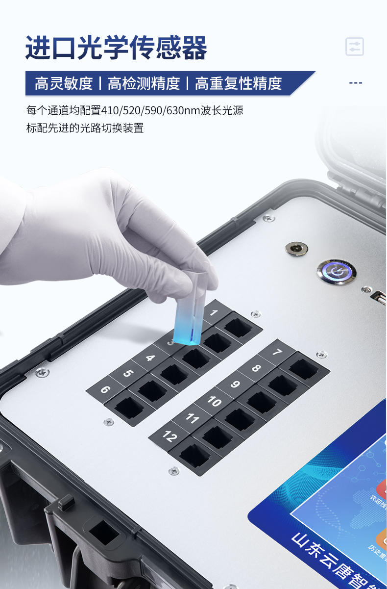 該儀器通過光電子技術對反應生成物的反射率進行分析測試,定量或定性分析樣品中待測物的含量。安卓智能操作系統,7英寸高靈敏真彩觸摸屏,更加**和人性化操作,儀器具有4G無線聯網、wifi聯網上傳、GPRS無線遠傳功能,快速上傳數據。便攜式儀器,便于現場攜帶操作,主機重量不大于3kg。具有可見光光源,可檢測可見光信號,檢測值0~30000。具有常用打印機數據線接口,直接打印結果;配備USB接口,可連接網絡。具有多個食品安全檢測項目,開放平臺,可以增減檢測項目。檢測通道:12個檢測通道,可以同時測試多個樣品,每個樣品由程序控制分別獨立工作,不會互相干擾。以模擬反射率的標準片為50%附近時為代表,精密度CV值≤0.8%。供電電源:(220±22V)~50Hz±1Hz,供電電源電壓波動不應超過220V AC±10%。內置打印機,實時打印檢測結果。內置大容量電池,便于現場執法檢測。高靈敏度,高檢測精度,高重復性精度,掃描式高精度光學傳感器。機身儲存上萬條檢測結果,也可以導出儲存。開放端口,可連接監管平臺數據庫,界面有上傳操作。
