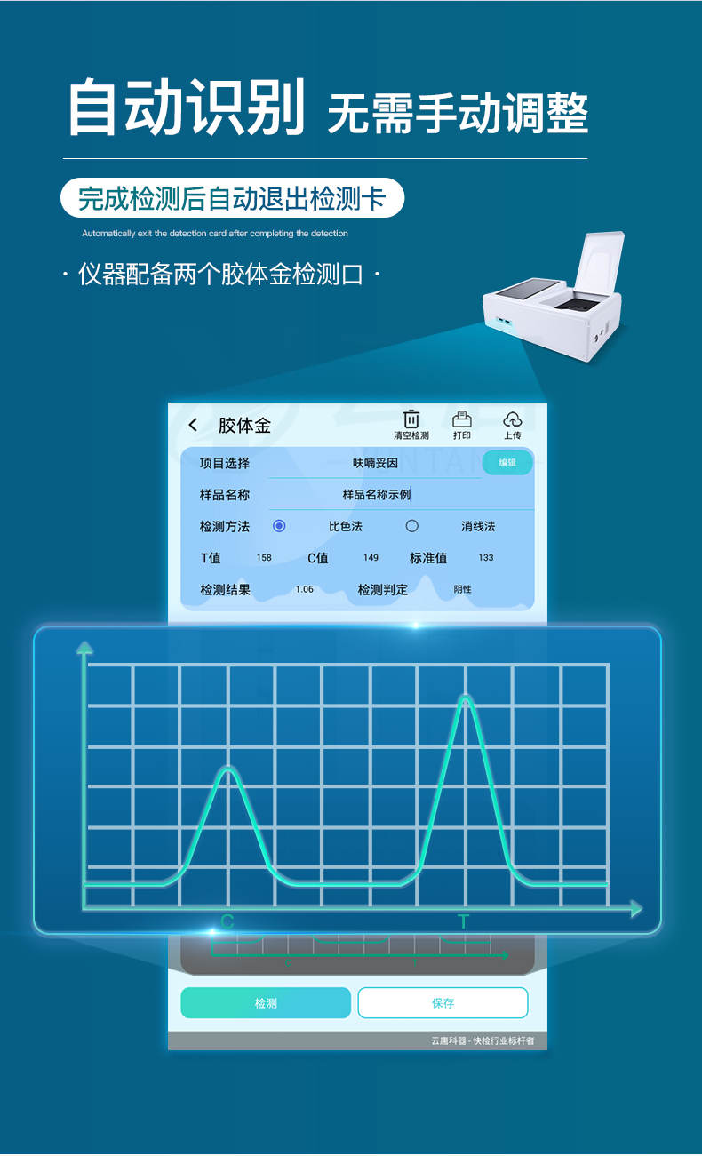 11.5、曲線形式:直插式掃描方式,顯示金標卡圖像,實時生成、識別CT曲線圖,無需手動調(diào)整,完成檢測后自動退出檢測卡。兼容市場上其他金標卡,使用耗材不受限制。