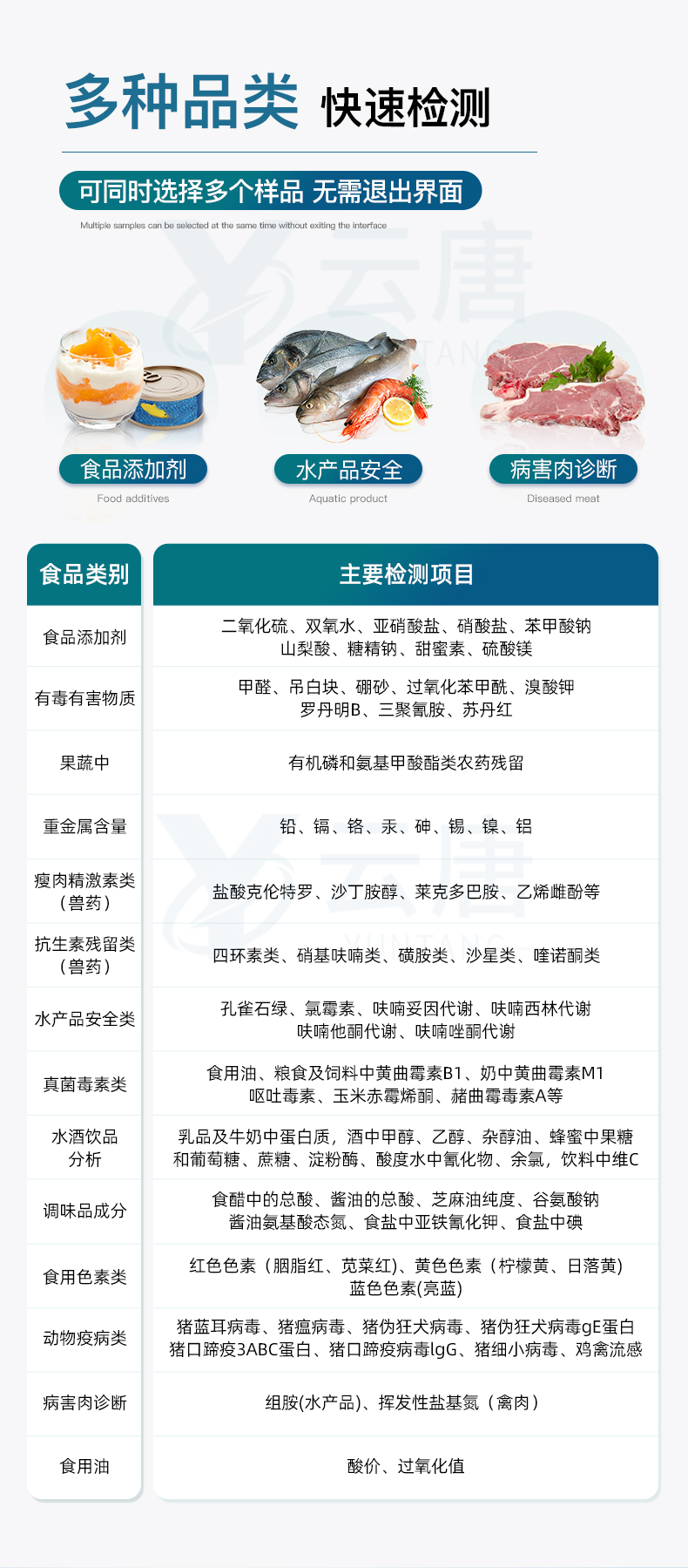 多功能食品安全檢測設備 YT-GA3 檢測項目: