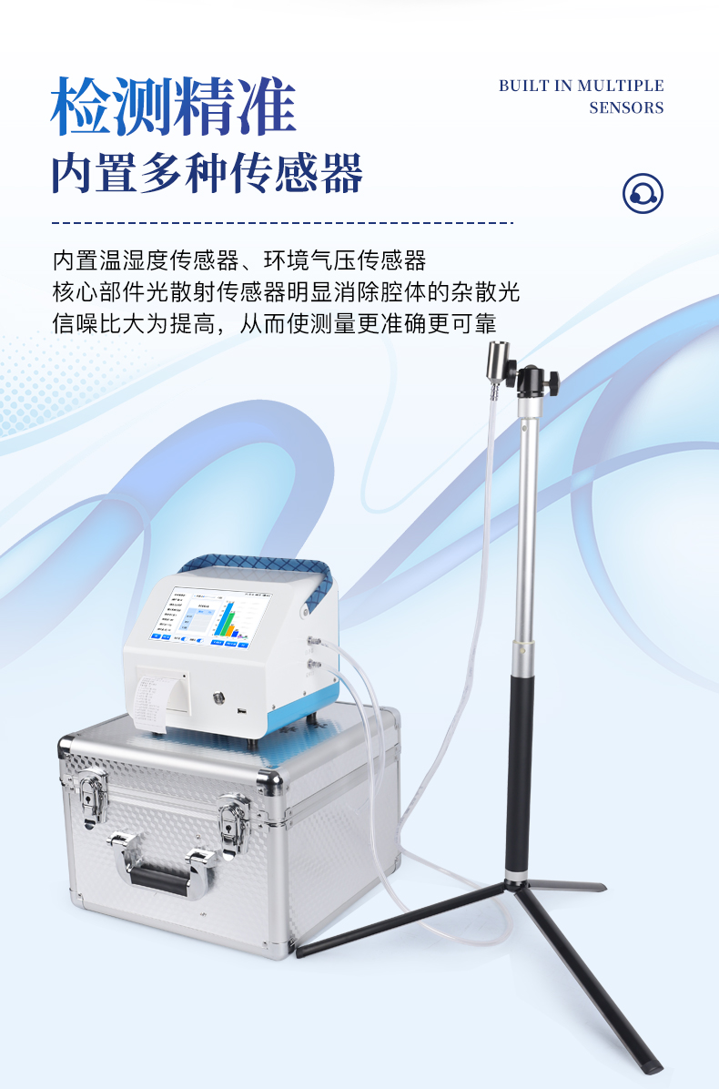 智能塵埃粒子計數器,其置信度測量檢定標準按照國標GB/T6167-2007和校準規(guī)范JJF1190-2008規(guī)定的條件,對凈化級別進行自動判斷。一次采樣可同時測得六個粒徑通道的塵埃粒子數,并同時顯示六個粒徑通道粒子的數目及其變化情況。