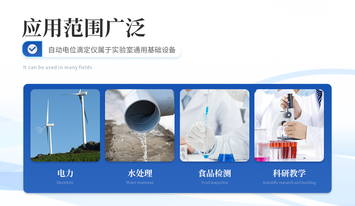 | 自動電位滴定儀屬于實(shí)驗(yàn)室通用基礎(chǔ)設(shè)備,使用非常廣泛,可應(yīng)用在食品、藥檢、疾控、商檢、水處理、石油、化工、海洋、電力、環(huán)保、新能源、教學(xué)、科研等相關(guān)領(lǐng)域。 |