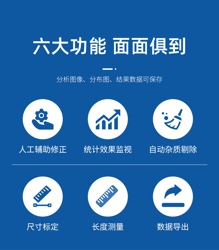 可不等間距地自定義分段直徑,自動測量各直徑段長度、投影面積、表面積、體積 等,及其分布參數(shù);
