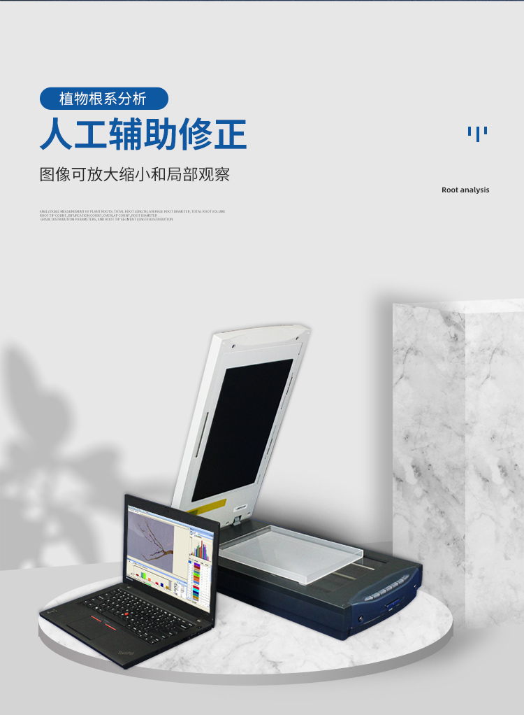 1、 圖像撲捉系統(tǒng):經(jīng)過廠家調(diào)試的標(biāo)準(zhǔn)根系掃描設(shè)備,匹配專門的光源、具有持續(xù)校正特點、根系固定裝置等