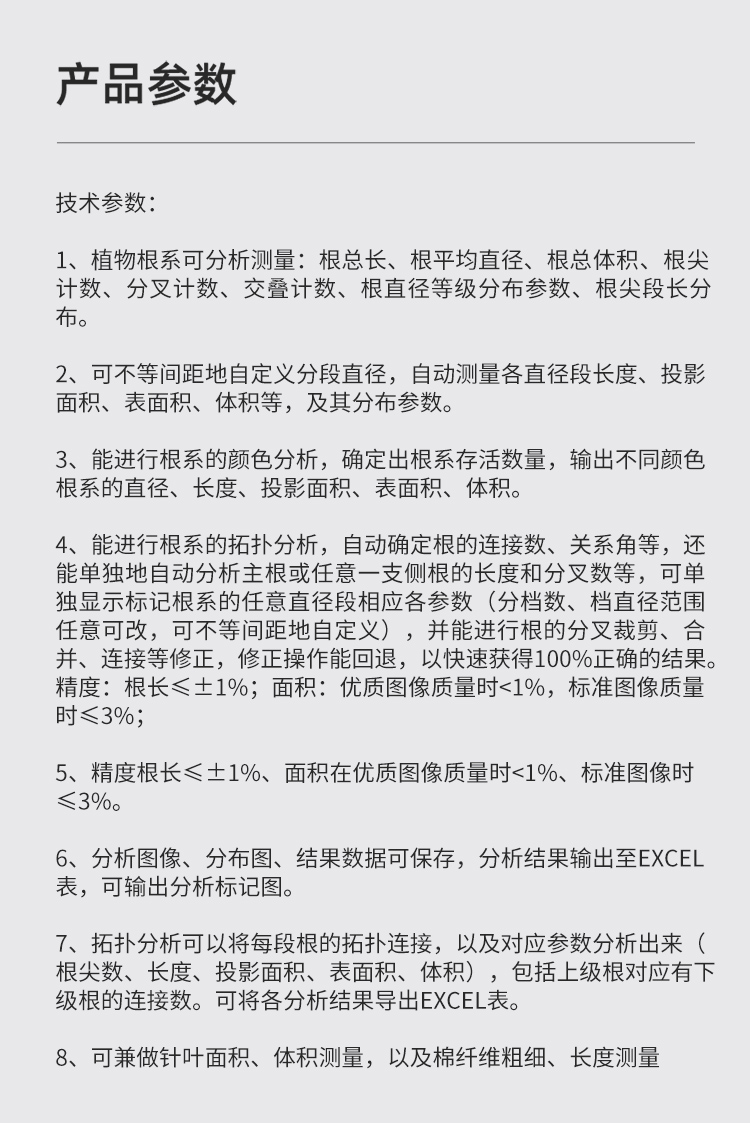 物根系分析儀器系統(tǒng)可分析測量根總長;